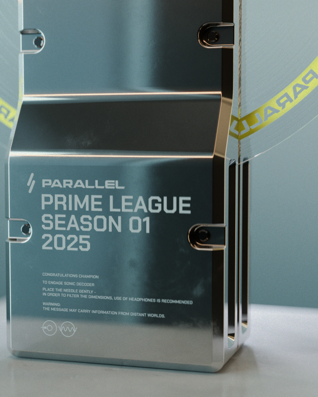 The first Parallel Championship took place in Las Vegas in March 2025. I designed the trophy for this event, which features two slabs of stainless steel holding a playable vinyl record with the Parallel soundtrack. For future championships, the main body of the trophy will stay the same, but we’ll change the vinyl record's design and contents each year. This will help make it a unique and recognizable item over time.